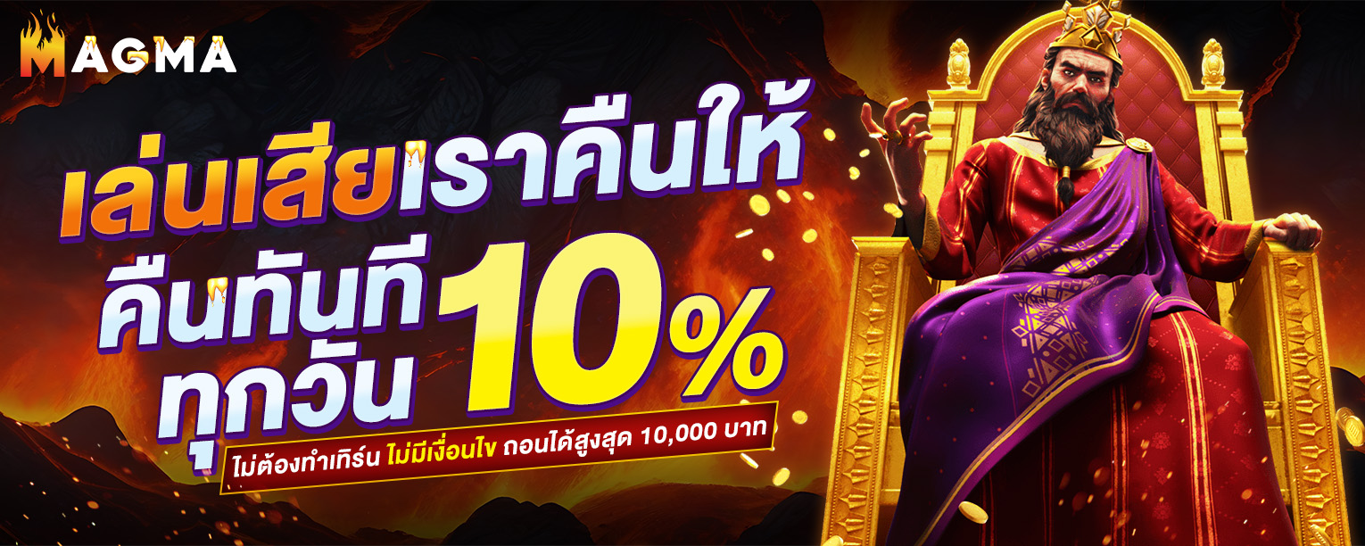 นอกจากนี้ MAGMA ยังมีโบนัสเติมเงินที่สุดคุ้ม เมื่อฝากเงินครั้งแรกรับโบนัสทันที 100% สูงสุดถึง 1,000 บาท และทุกครั้งที่เติมเงินจะได้รับโบนัสเพิ่มอีก 10% ไม่จำกัดจำนวนครั้ง ยิ่งเล่นยิ่งคุ้ม! พิเศษสำหรับสมาชิก VIP จะได้รับสิทธิประโยชน์มากมาย ทั้งโบนัสคืนยอดเสียรายสัปดาห์ โบนัสวันเกิด และของรางวัลพิเศษอีกมากมาย